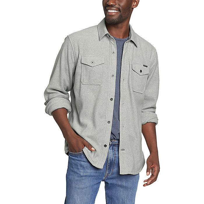 FEATURES of the Eddie Bauer Men’s Chutes Eco Microfleece Long Sleeve Shirt